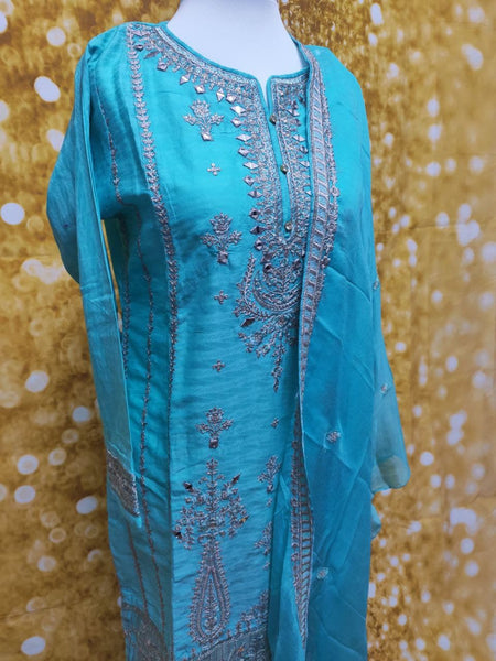 Ferozi Fency Silk Embroidered 3 Piece Suit Size: M