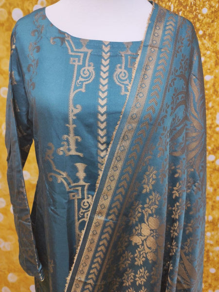 Grey Blue Viscose Banarsi 3 Piece Suit Size: M