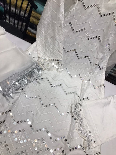 Linen Thread and Sequence Mirror 3 Piece Suit Size: L